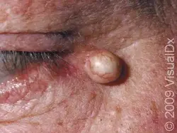 Appearance: begins as a vesicle or pustule on inflamed skin, then develops a hard crust covering the blister; if crust is removed, lesion will reveal an ulcer that is erythematous, edematous, and oozing pus