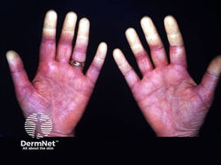Location: begins on the ankles and wrists, then spreads to the palms and soles