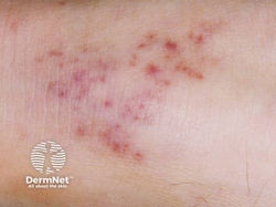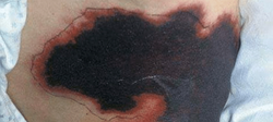 Appearance: purport that becomes bluish-black with a red rim over a few days; blood blisters and full thickness skin necrosis follows